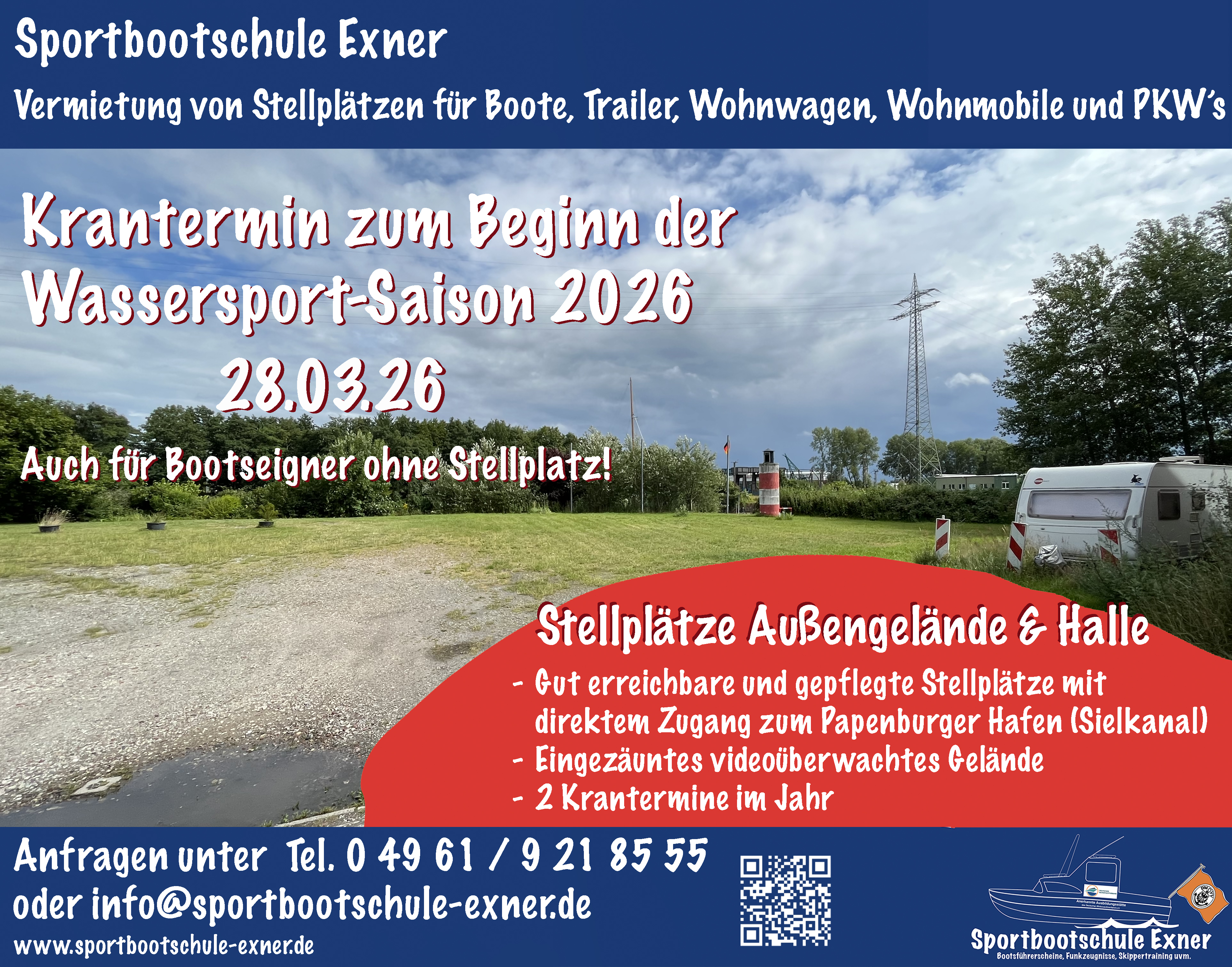 0 49 61 / 9 21 85 55 oder info@sportbootschule-exner.de oder Kontakt