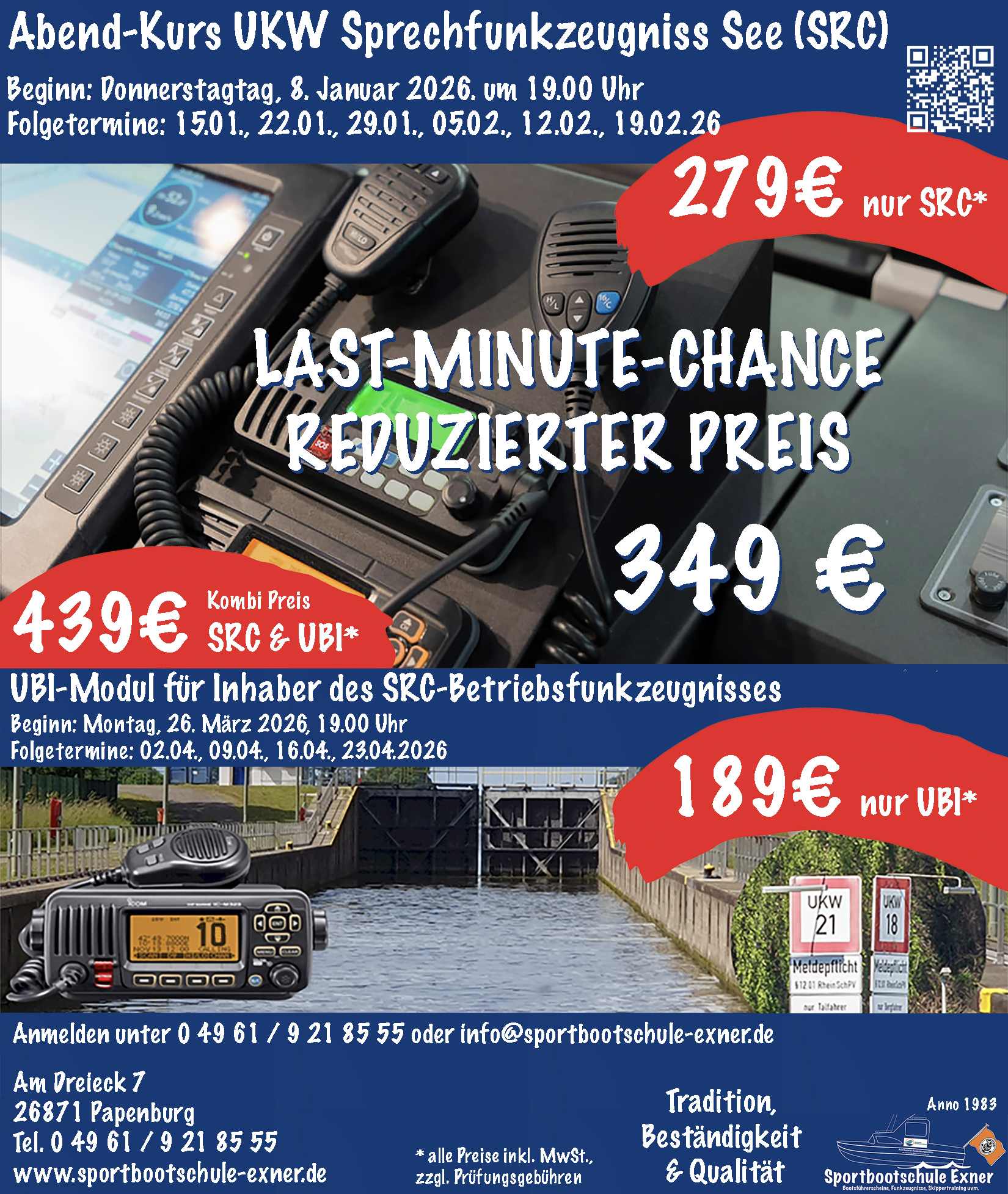 Die Sportbootschule Exner in Papenburg zeigt Dir in einem Abend-Lehrgang von ca. 3 Stunden worauf Du beim Umgang mit den explosionsgefährlichen Seenotsignalmitteln achten musst und besprechen die theoretischen und rechtlichen Grundlagen die für die Prüfung zum FKN wichtig sind.