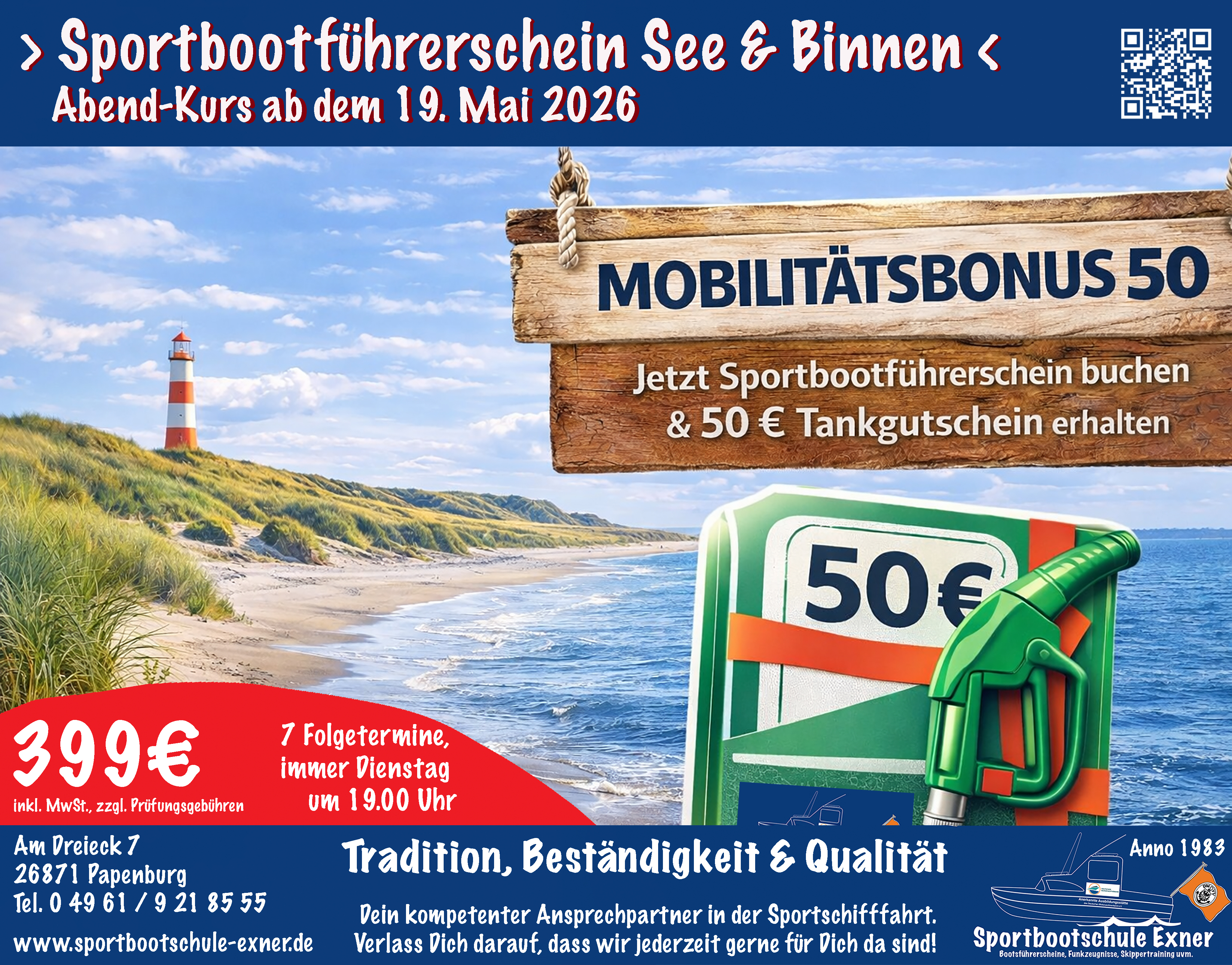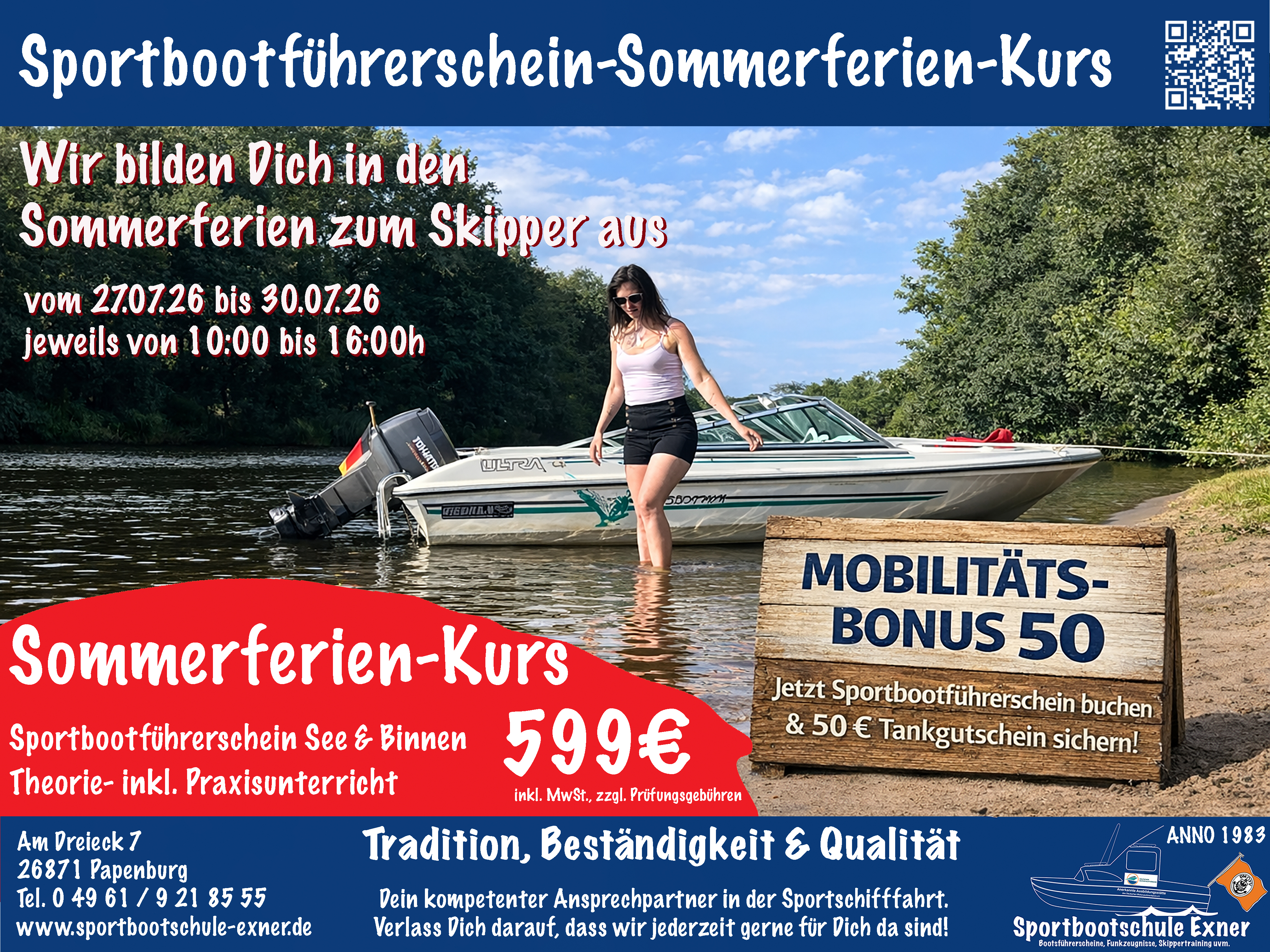 Zur Buchung einfach das Kontaktformular verwenden. Sie können auch gerne eine E-Mail an info@sportbootschule-exner.de mit dem Betreff "Stream" senden oder sich telefonisch unter 04961/9218555 melden.